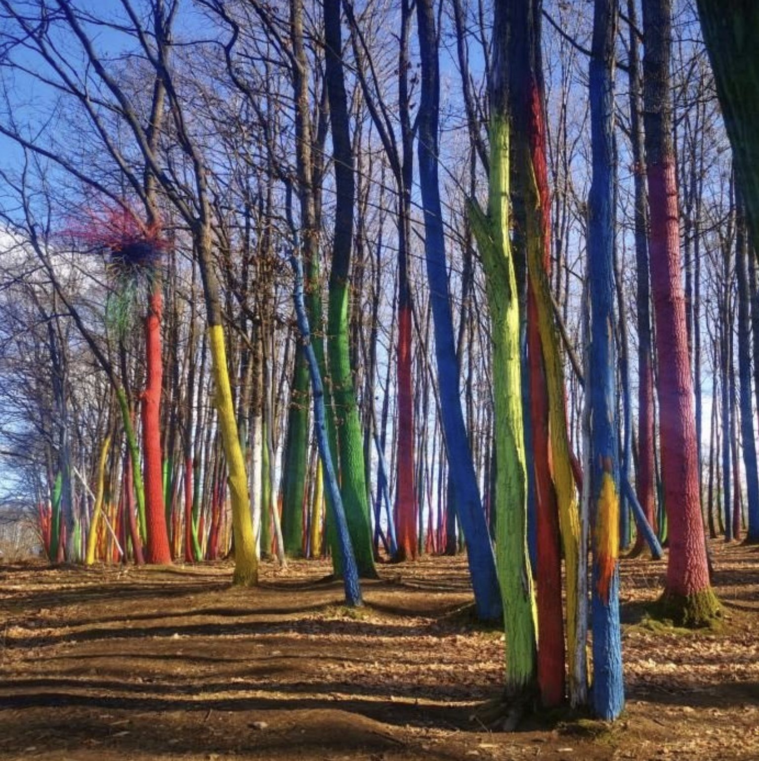 Apoi continuam sa facem o plimbare prin Pădurea colorată. Inițiatorul proiectului, Mihai Țopescu, a reușit să transforme un colț de pădure într-o adevărată doză de valoare estetică ce a atras privirile curioșilor și iubitorilor de artă deopotrivă.